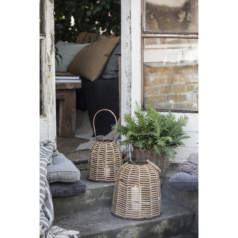Der Rattan ist ein natürliches Material immer so trendig. Diese schöne Laterne mit originalem Geflecht bringt einen authentischen Charakter und Atmosphäre voller Gelassenheit in Ihr Inneres.