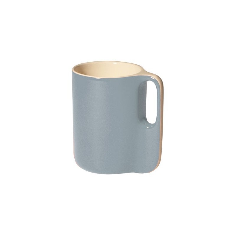 Die sehr gelungene Kombination der Primärfarben des zweifarbigen Steinguts und des Designs machen diesen Becher zu einem zukünftigen Sammlerstück.