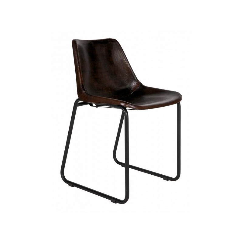 Dunkler Vintage-Stuhl aus echtem Leder woood