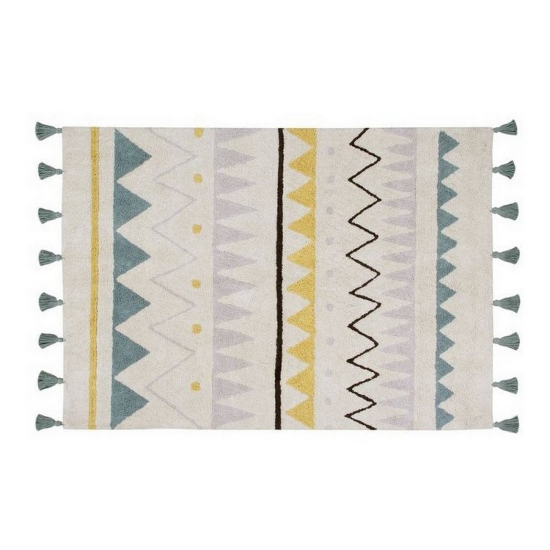Vintage blaues Baumwollband Lorena Canals Aztec 120 x 160 cm