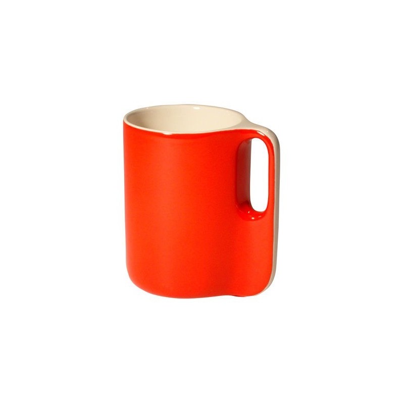 Die sehr gelungene Kombination der Primärfarben des zweifarbig glasierten Steinguts und des Designs machen diesen Becher zu einem zukünftigen Sammlerstück.