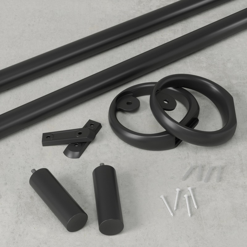 Sehr originelles Design für Ringlet Umbra Vorhangstange. Moderne und dekorative, ringförmige Spitzen verbergen die Befestigungsschrauben, so dass es sehr diskret und elegant. Aus Stahl gefertigt, enthält Ringlet alle Montagegeräte für einfache Installation.