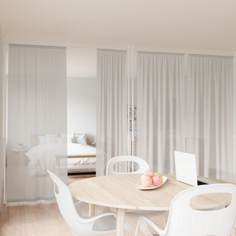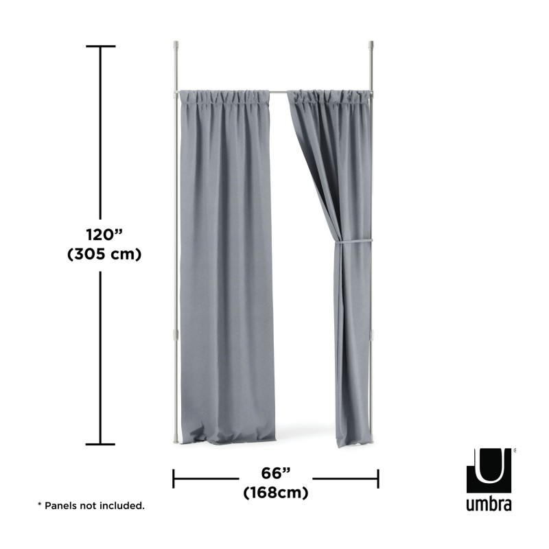 Irgendwo Umbra-Lösung ist ein einzigartiges nicht-bohrendes Stabsystem, das klassische Vorhangstangen für Ihre Fenster ersetzen soll, indem es eine ausgezeichnete Okkultation oder auch als echtes Raumtrennsystem ermöglicht, Räume in Ihrem Zuhause, Büro, Schlafsäle, medizinische Praxis zu schaffen