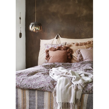 Madam Stoltz gestreiftes Baumwollplaid mit Fransen