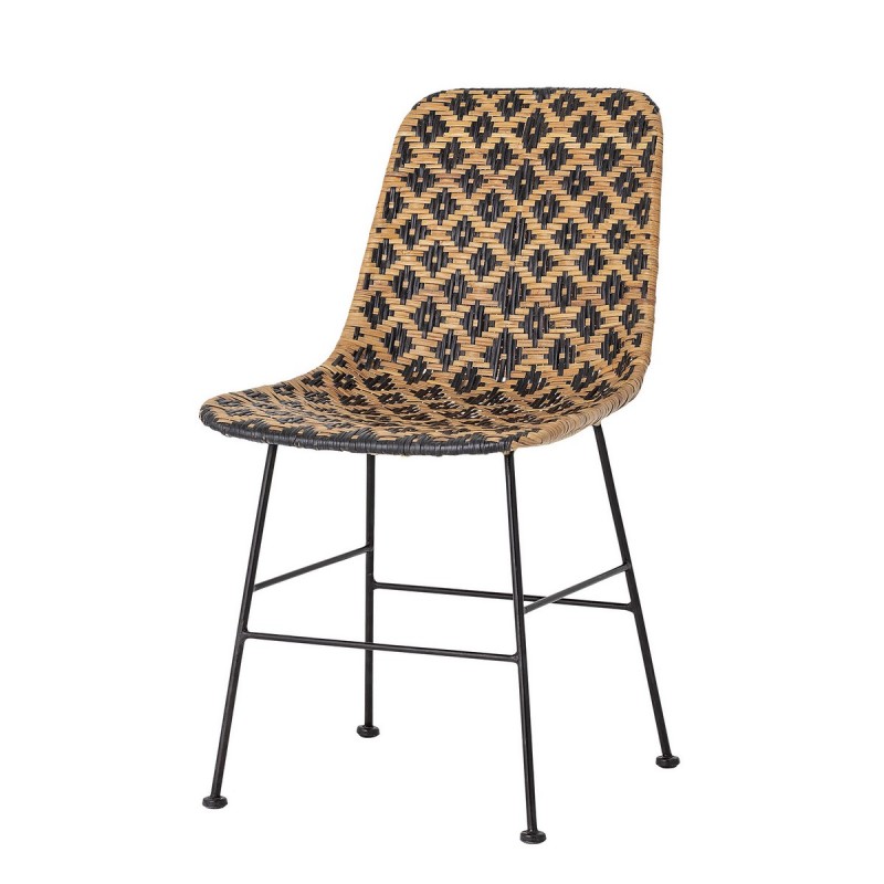 bloomingville kitty chaise rotin metal cannage motif losanges noir