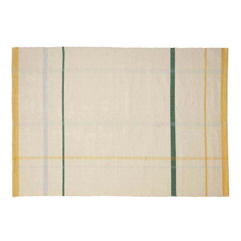 hubsch tapis contemporain design coton beige rayures jaune vert