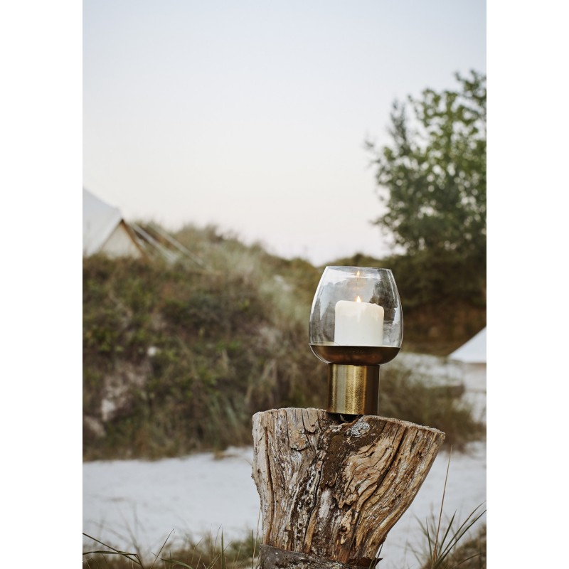 madam stoltz grand photophore porte bougie metal dore verre chic