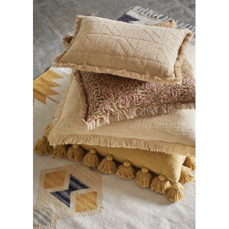 petit coussin coton uni marron noisette franges 3 boutons madam stoltz