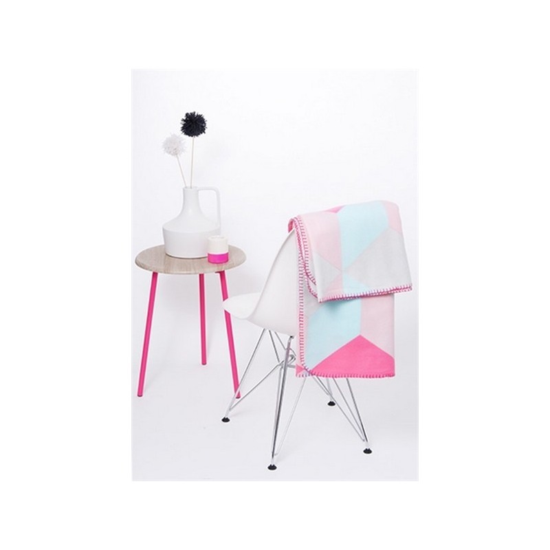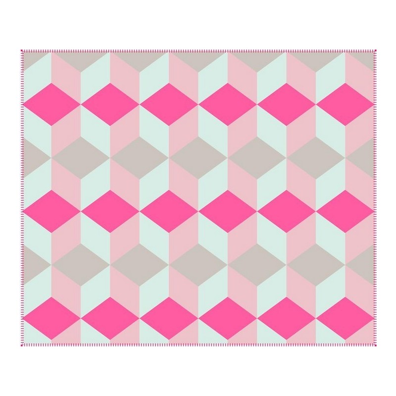 Plaid déco rose motifs géométriques present time block