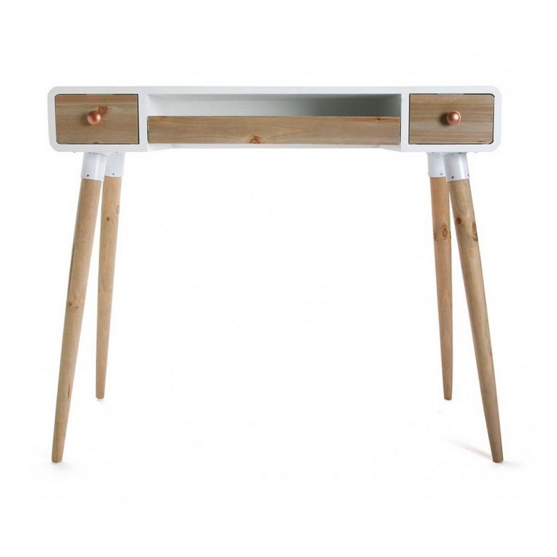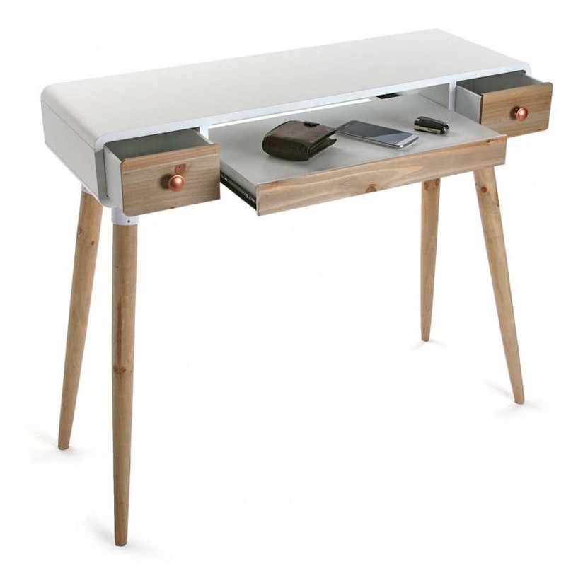 table bureau console avec tiroirs design scandinave bois et bois blanc versa treveris 21120024