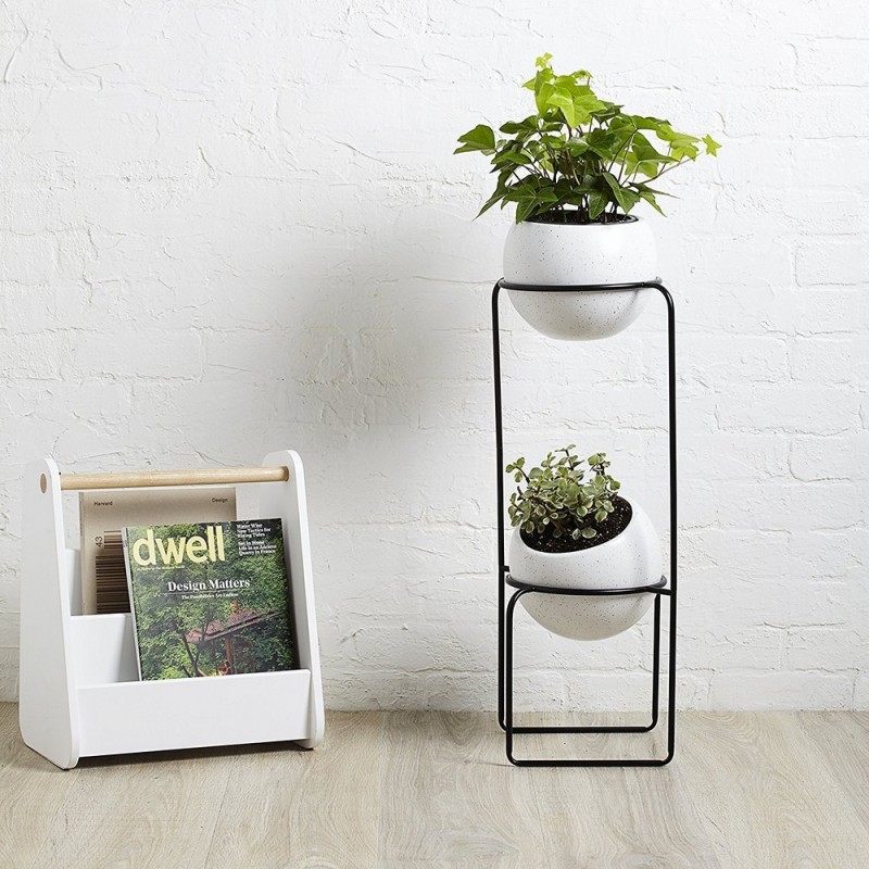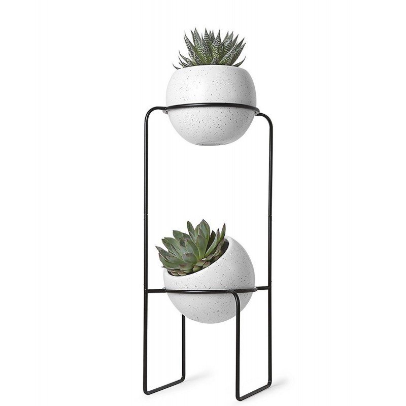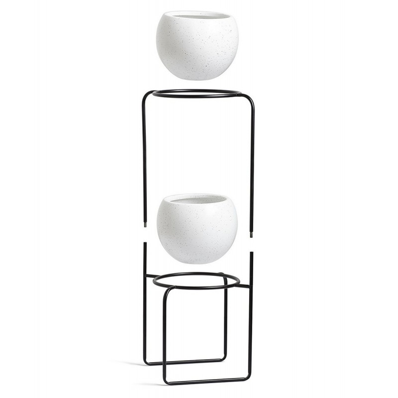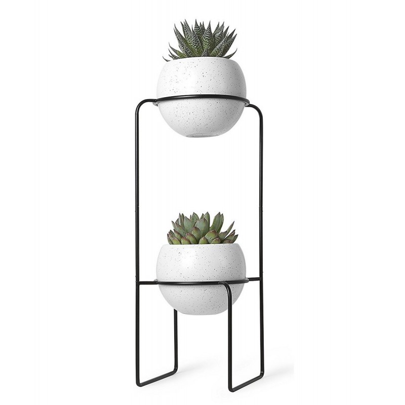 etagere porte plantes design metal noir 2 pots en ceramique umbra 1008047-748