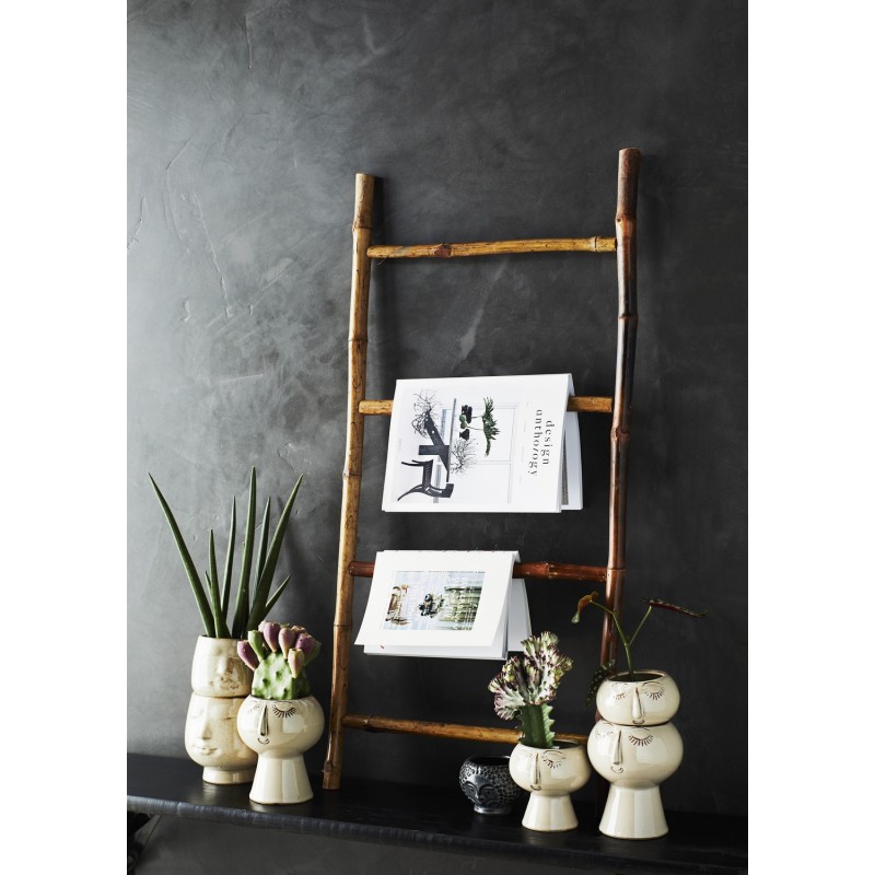 madam stoltz face cache pot vase forme de tete visage gres beige
