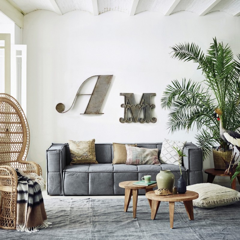 hk living table basse ronde rustique teak recycle hap6090