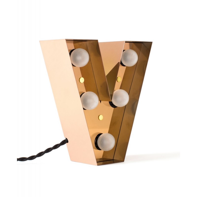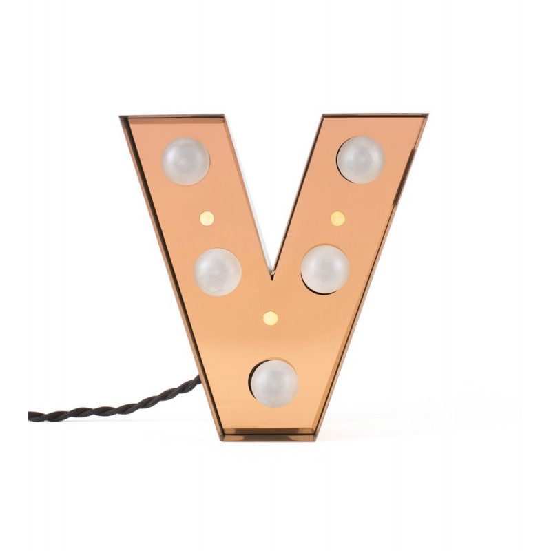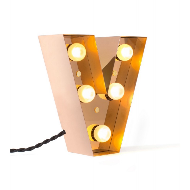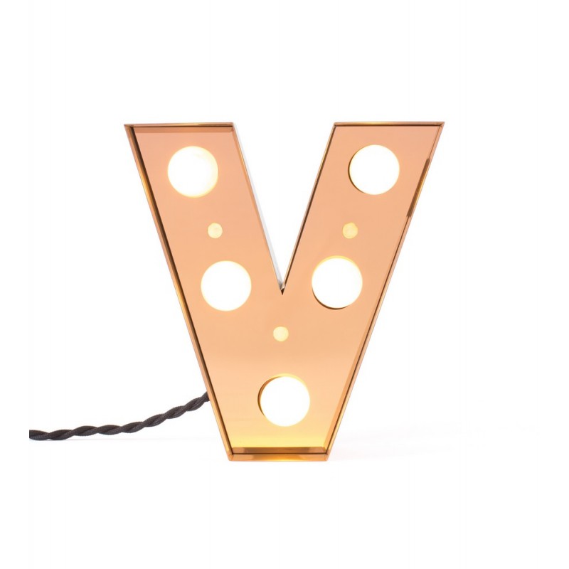 lampe lettre lumineuse v applique metal or led seletti caractere