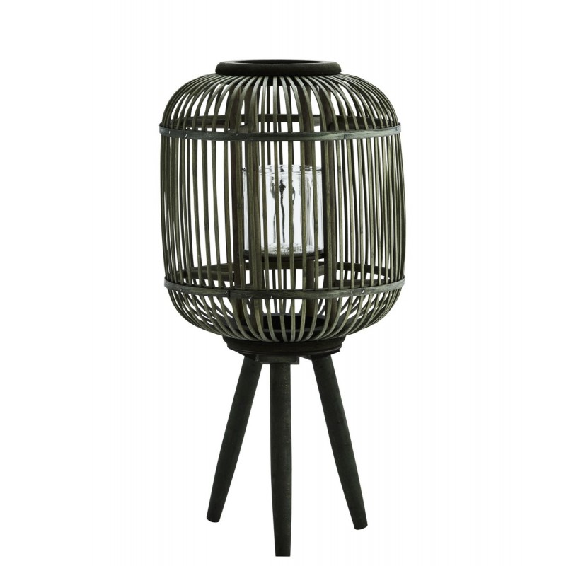 madam stoltz lanterne bambou sur trepied vert fonce