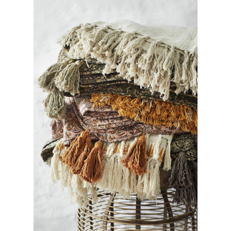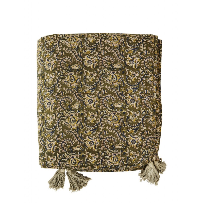 madam stoltz couvre lit coton imprime vert pompons 140 x 200 cm