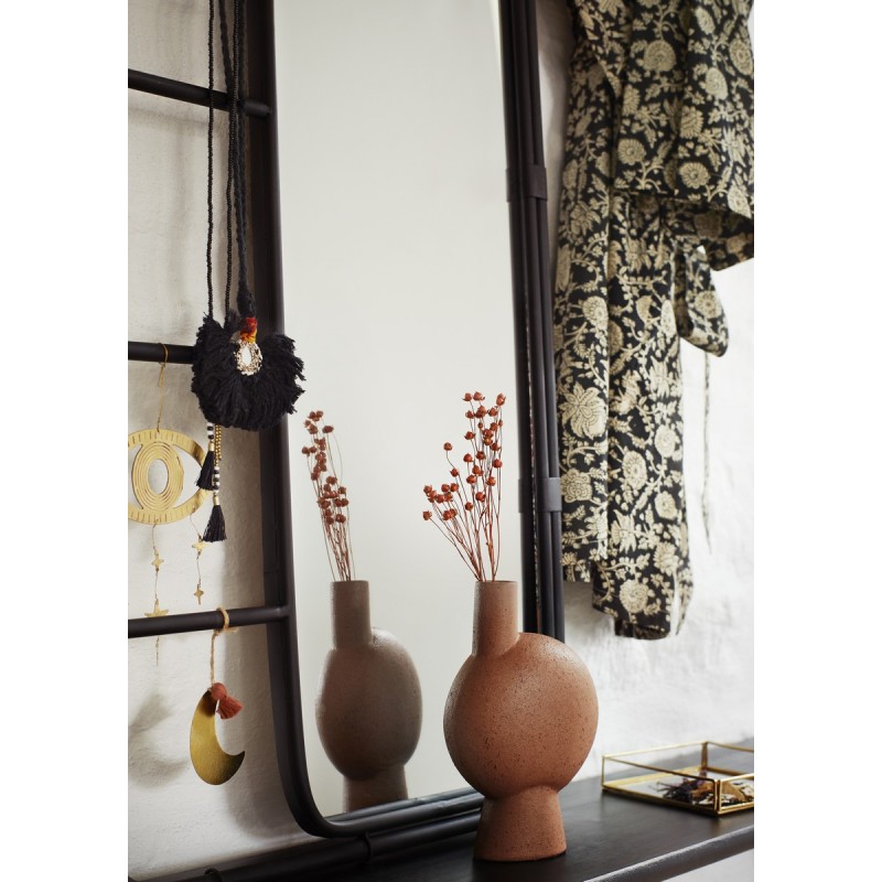 madam stoltz miroir a poser contre mur cadre metal noir avec barreaux