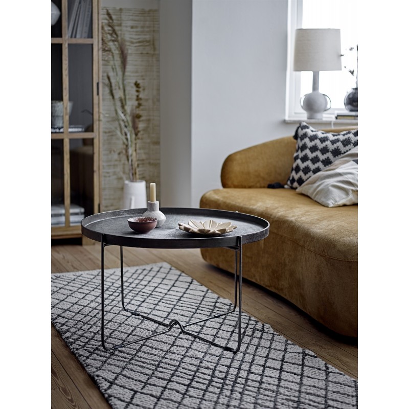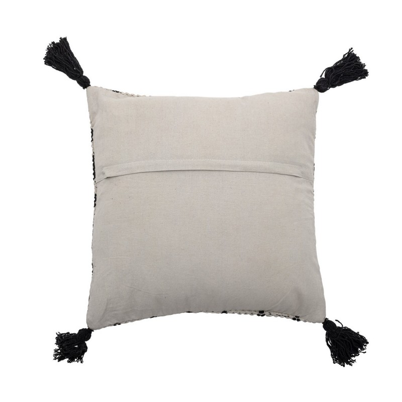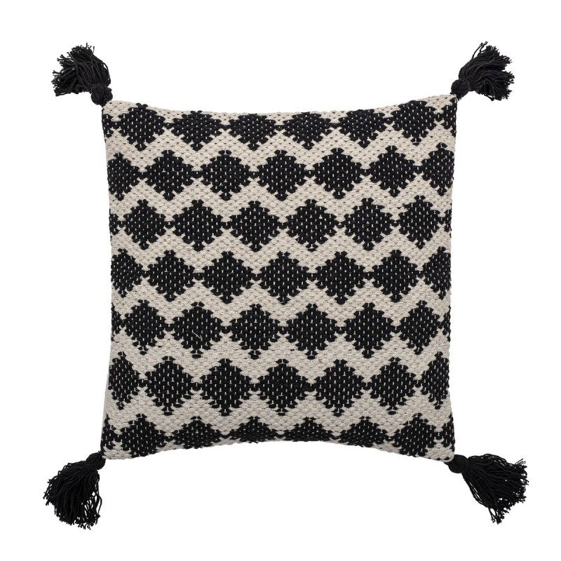 bloomingville coussin carre imprime losanges noir blanc pompons