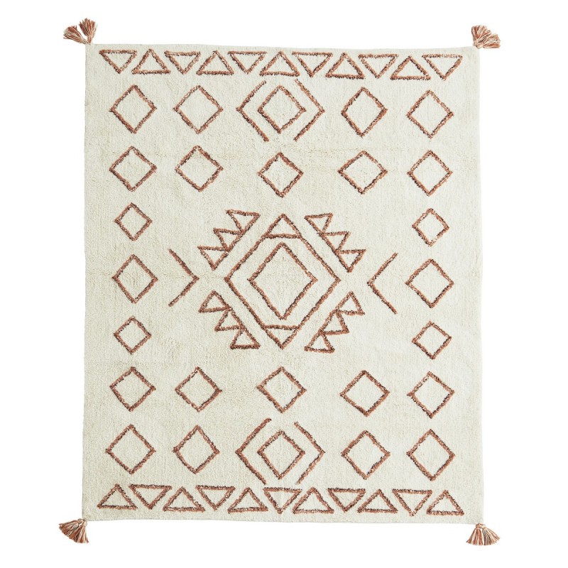 madam stoltz tapis tufte ecru motif geometrique orange 140 x 200 cm