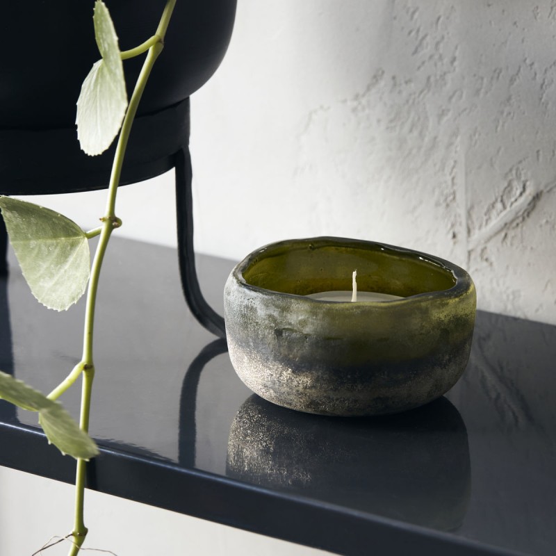 house doctor pearl porte bougie rond en verre recycle epais vert