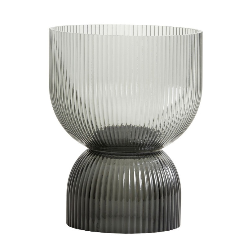 bougeoir porte bougie chic verre fume gris strie nordal riva
