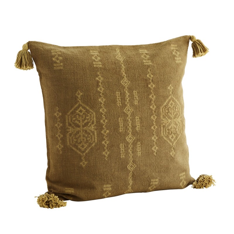 madam stoltz housse de coussin broderie ethnique jaune moutarde