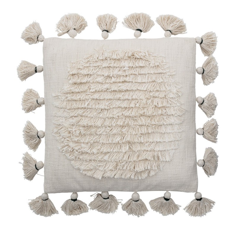 bloomingville coussin blanc tufte franges pompons carre 50 x 50 cm