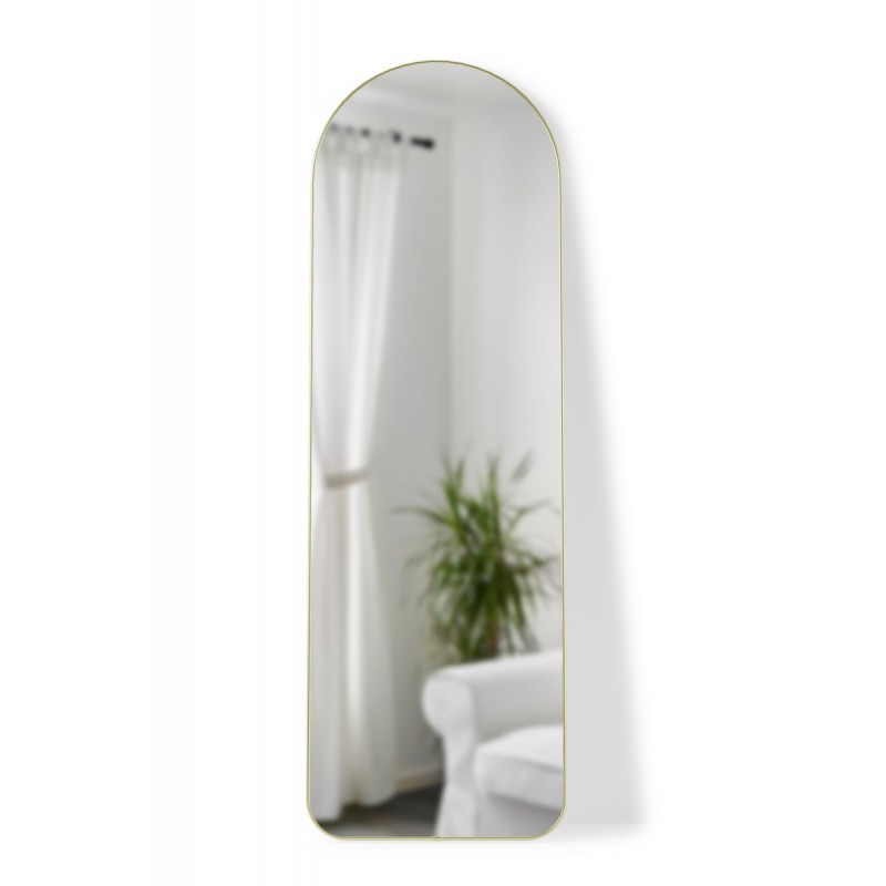 umbra grand miroir arche a poser contre le mur cadre metal laiton