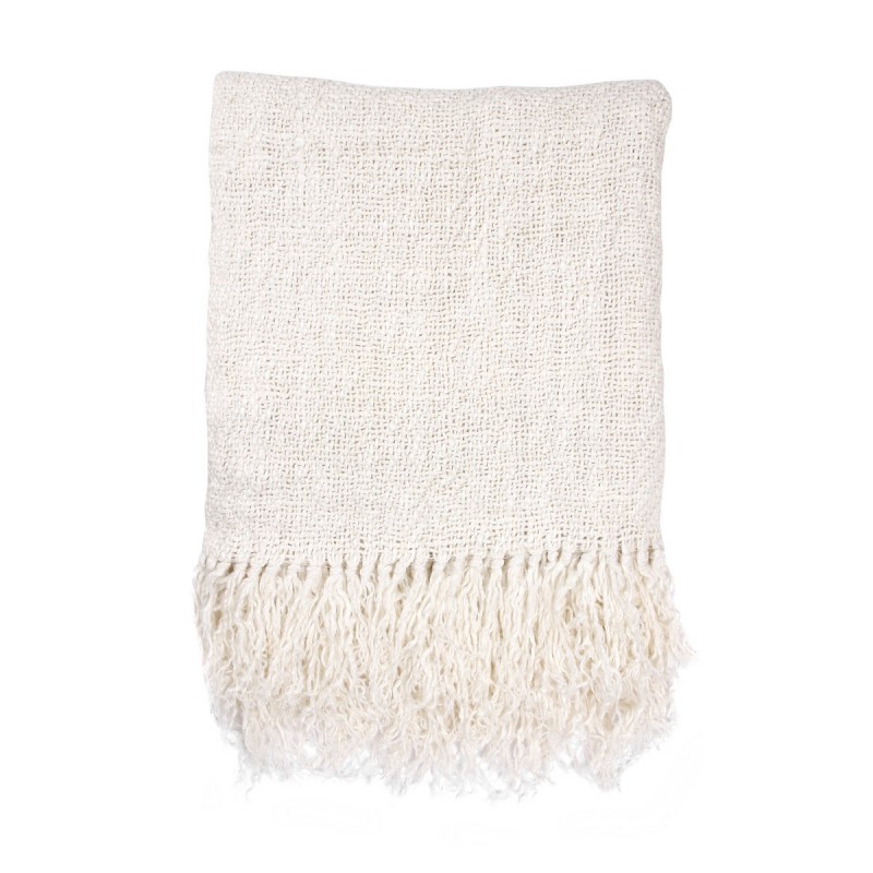hk living plaid lin blanc franges 130 x 170 cm