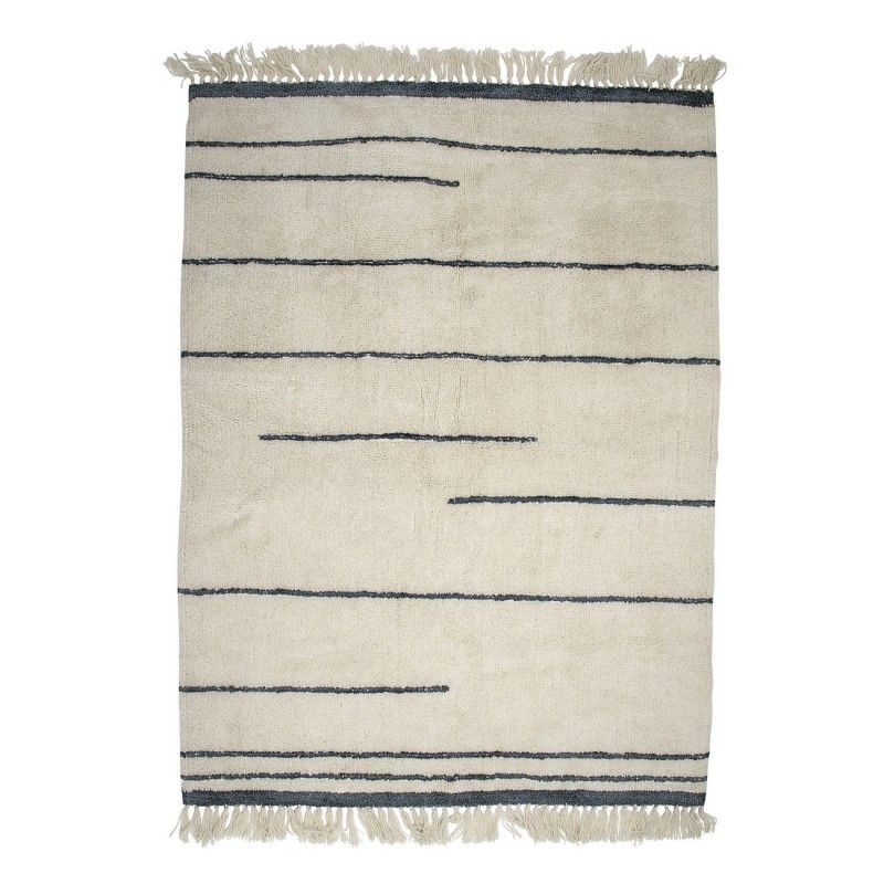 bloomingville tapis moelleux en laine blanc rayures fines noires