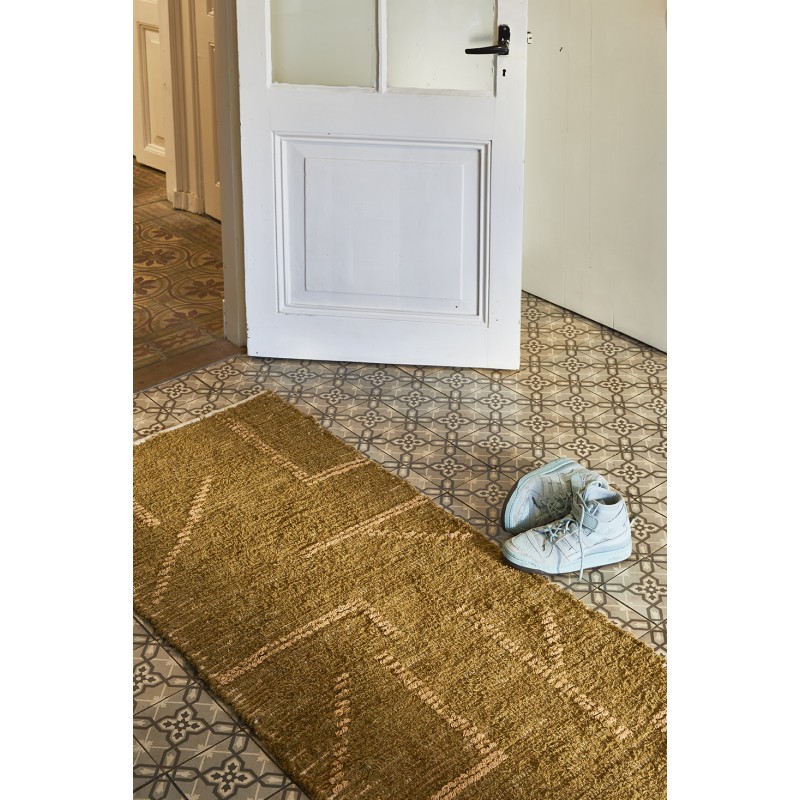 hk living tapis de couloir coton recycle jaune moutarde motif