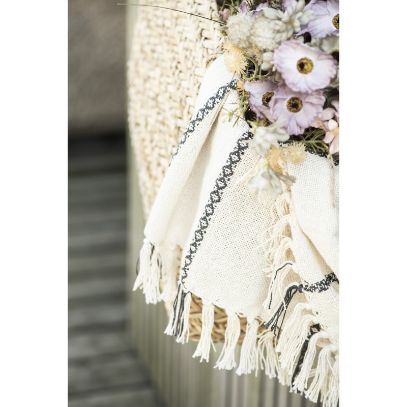 plaid coton ecru creme franges motif noir ib laursen