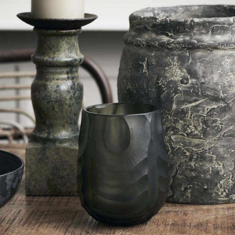 house doctor photophore style art deco verre poli sculpte vert jewel