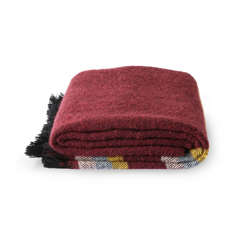 hk living plaid couverture moelleuse rouge bordeaux rayures doris