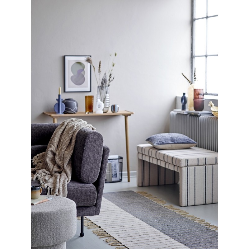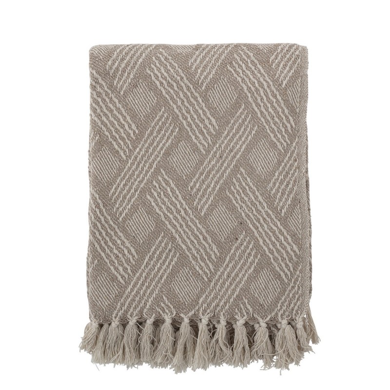 bloomingville plaid coton recycle beige franges ton naturel motif chic