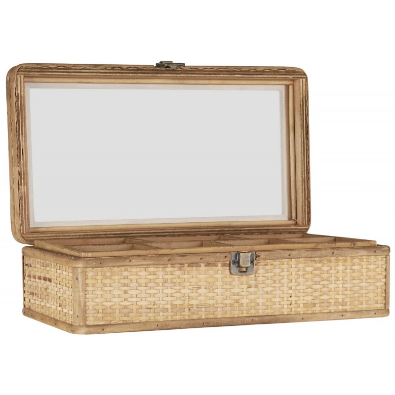 boite a bijoux rotin couvercle verre 16 compartiments ib laursen