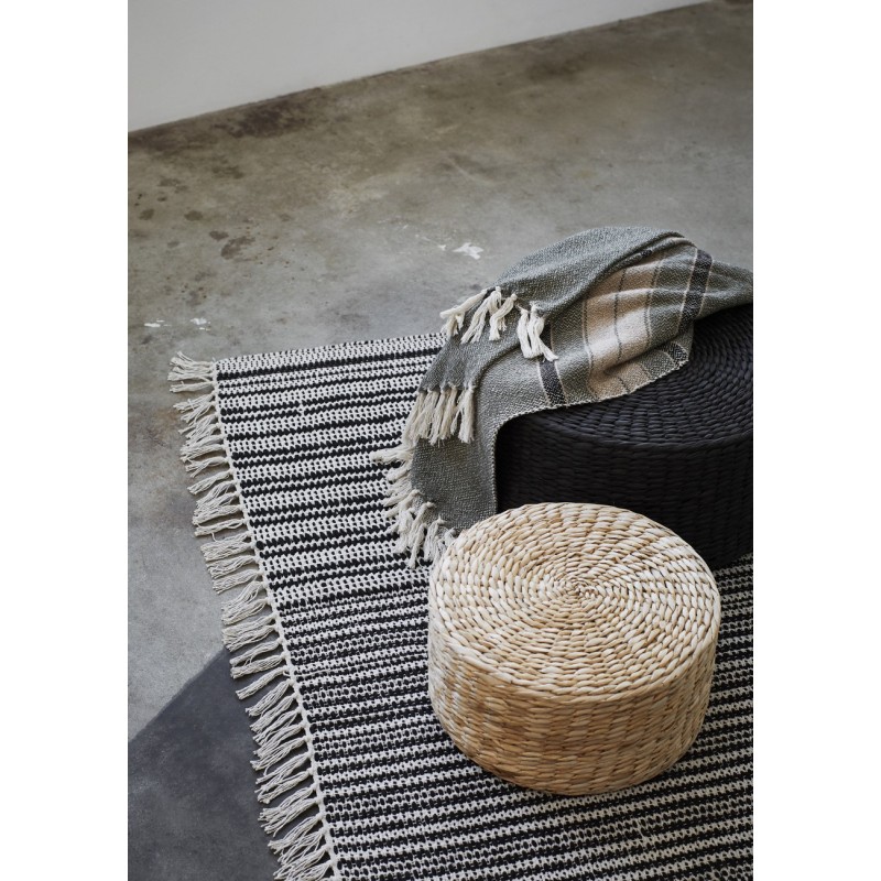 madam stoltz set 3 poufs ronds en fibre de papier noir