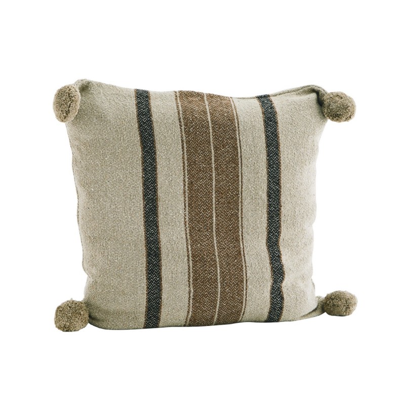 madam stoltz housse de coussin coton grosses rayures beige marron vert