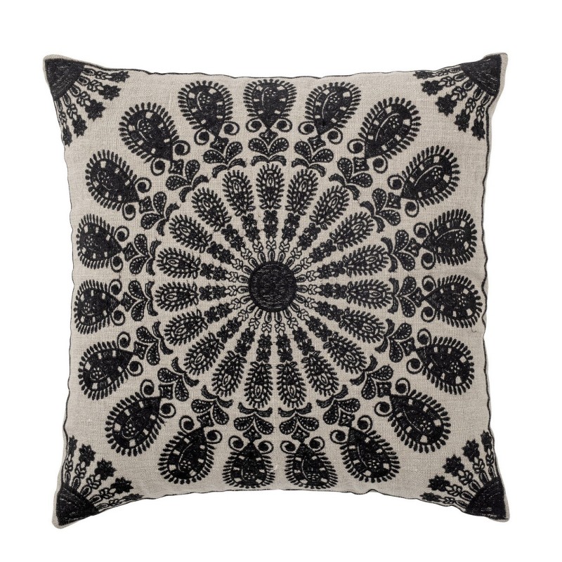 bloomingville coussin carre lin noir blanc rosace style boheme datta