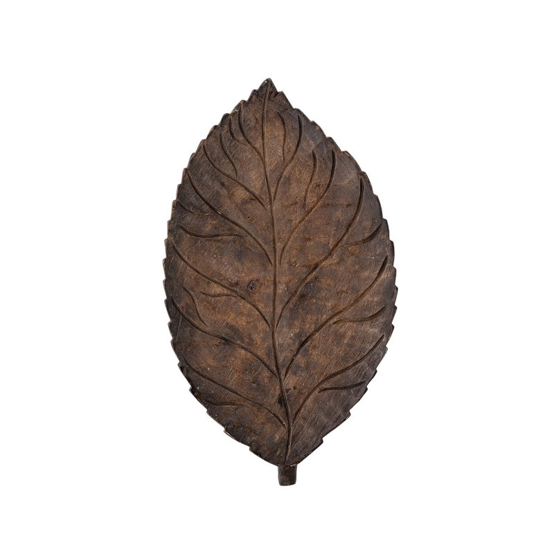 bloomingville plateau decoratif bois manguier sculpté forme de feuille