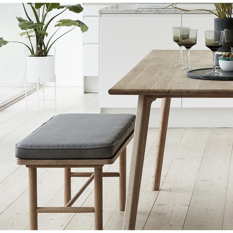 hubsch petit banc bois clair style scandinave avec coussin gris