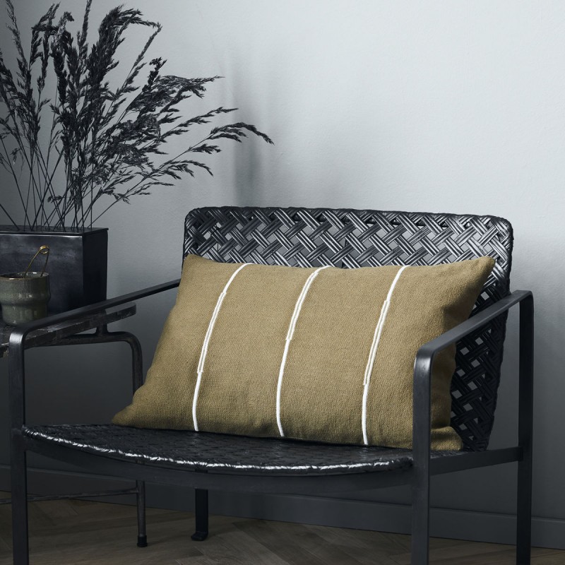 house doctor housse coussin rectangulaire coton vert olive ligne brode