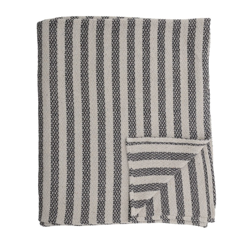bloomingville jete de lit coton recycle raye rayures noir blanc