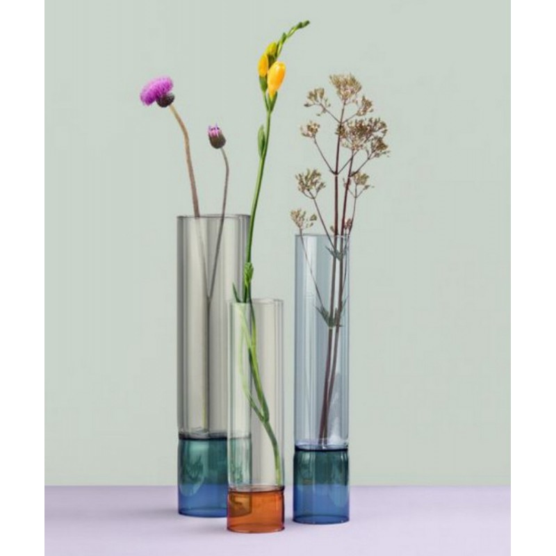 ichendorf bamboo groove vase verre droit design bicolore ambre gris