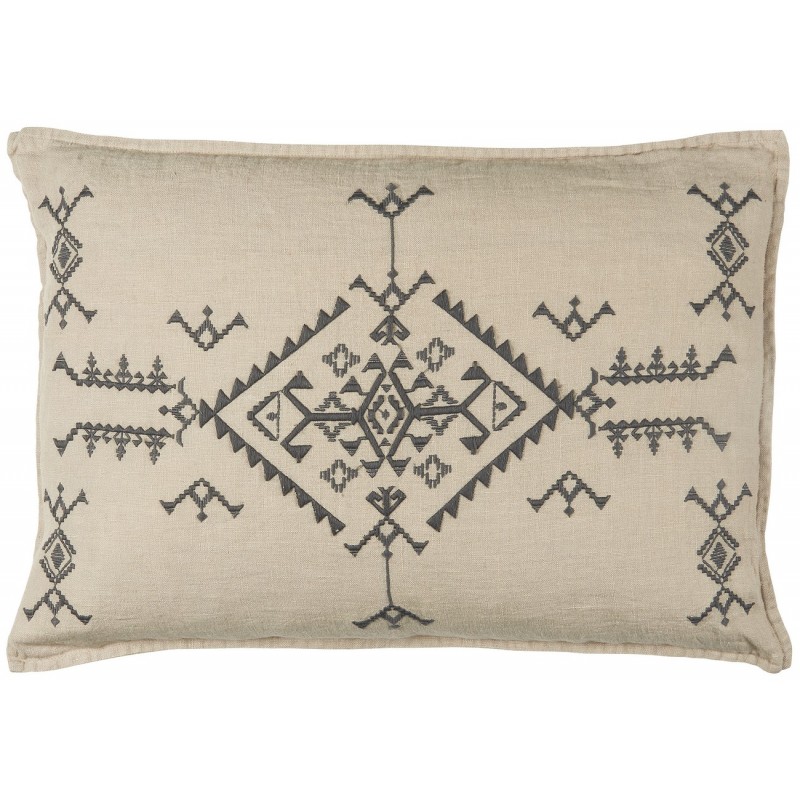 ib laursen housse coussin rectangulaire lin naturel beige brode gris