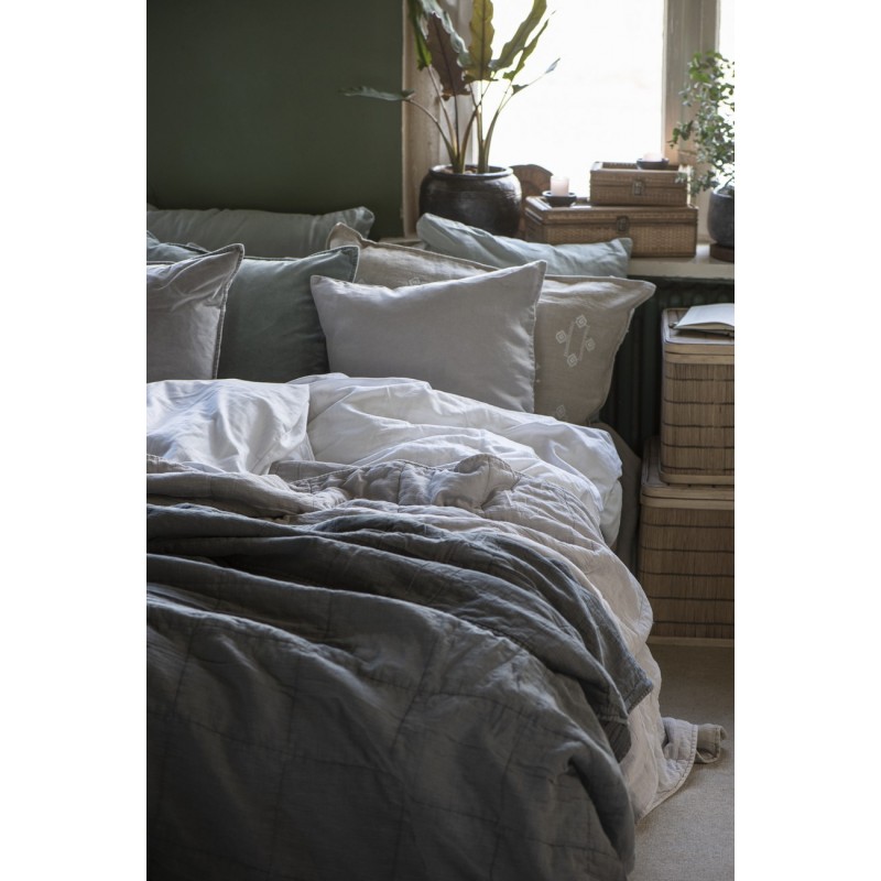ib laursen grande housse de coussin lin naturel brode beige blanc