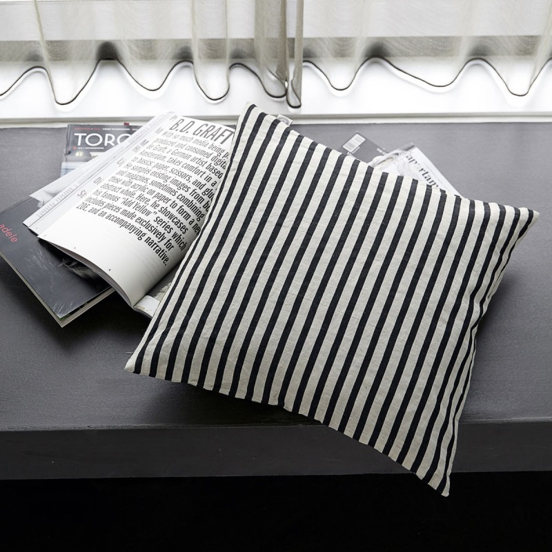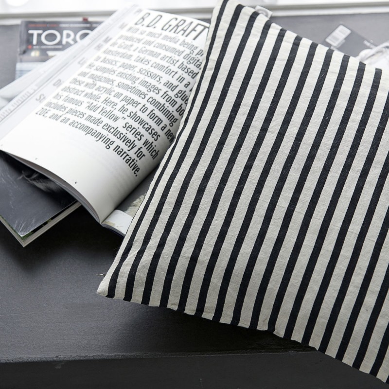 house doctor housse de coussin lin raye noir gris 50 x 50