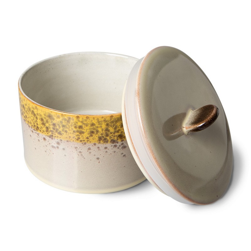 hk living boite a biscuits en gres bicolore jaune creme autumn