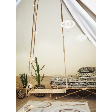 madam stoltz matelas long de banquette coton fleuri noir blanc