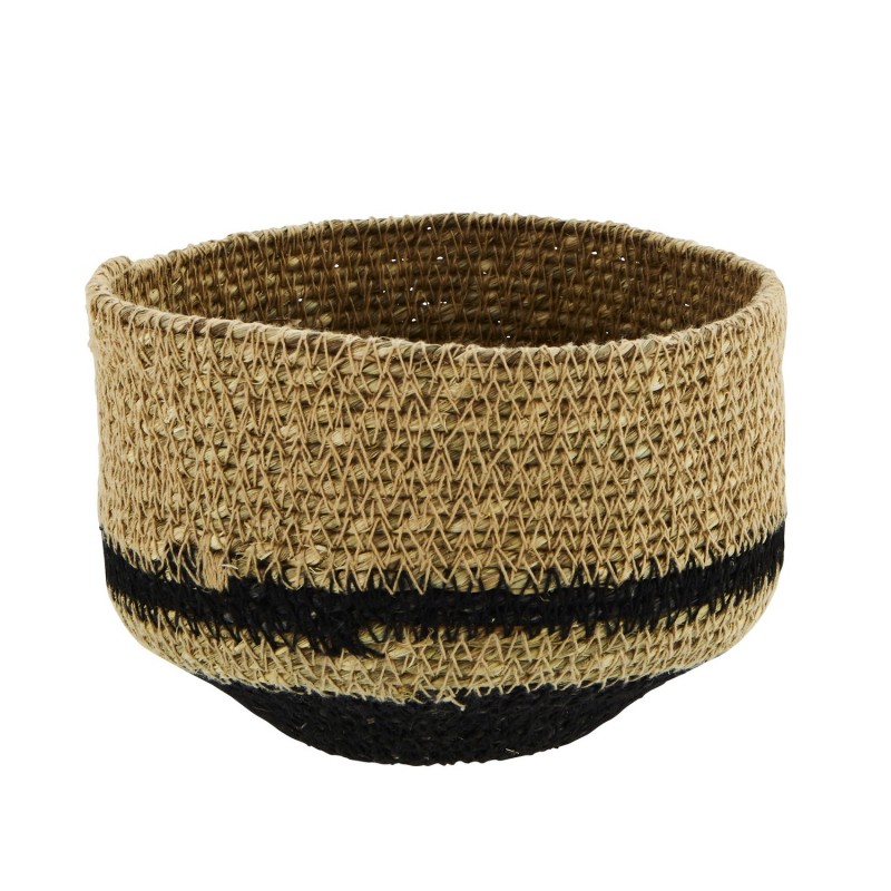 madam stoltz petit panier conique bicolore noir naturel jonc de mer